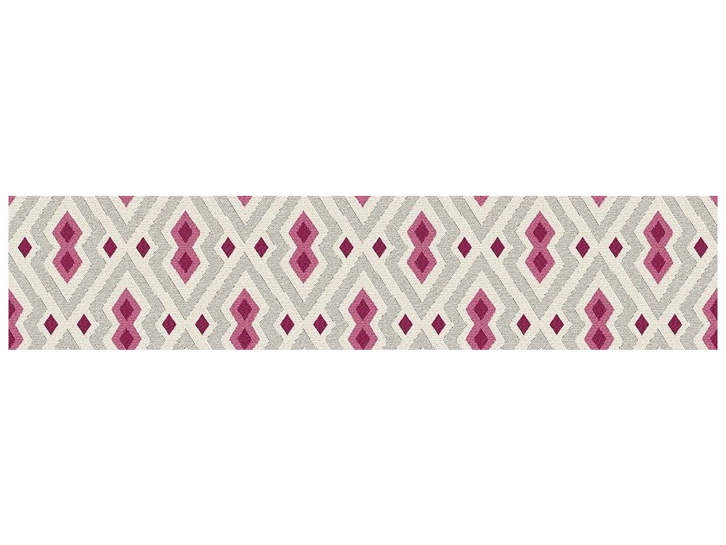 Látka s mírným leskem v barvě: tmavě karmínově červená z malých kosočtverců, jasně červená z těch větších, černá a bílá melanž velkých dvojitých kosočtverců a špinavě bílá |