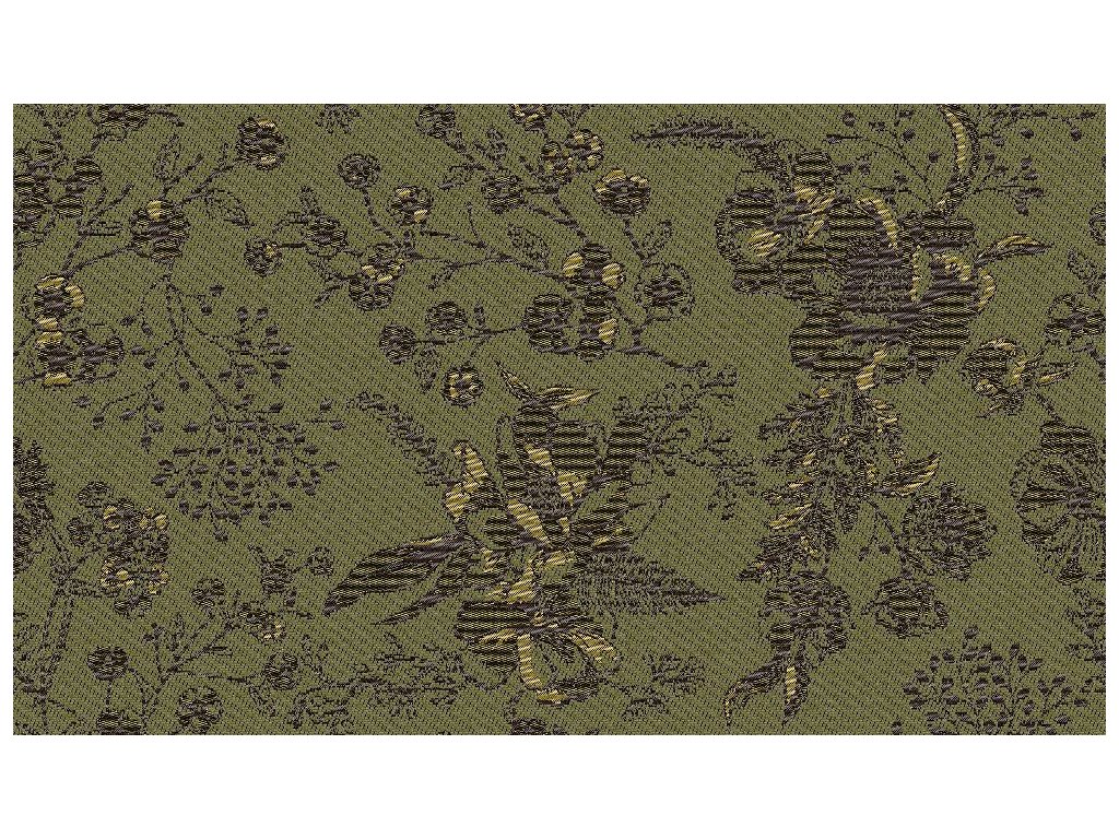 pozadí pruhované žinylky v saténově matném provedení ve stínované tmavě zelené barvě , lesklý vzor - tmavě zlatá a tmavě hnědá |